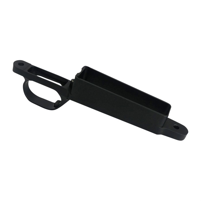 Le Hunter Detachable Box Magazine (DBM) en métal inférieur est conçu pour les tireurs qui recherchent un métal de fond monté à fleur, capable d'accepter des chargeurs flush. Fabriqué à partir d'un seul bloc d'aluminium 6061, le DBM est doté d'un système de libération à ressort cantilever breveté qui ne s'ouvre pas sous un fort recul. Le mécanisme de libération du chargeur est également ajustable, élégant et presque impossible à activer accidentellement.