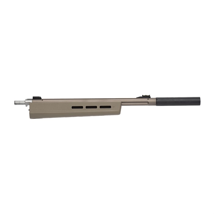 The Hunter X-22 Takedown Forend is intended for use with additional barrels on rifles currently equipped with the Hunter X-22 Takedown Stock. Made from high quality reinforced polymer, the X-22 Takedown Forend features a reversible barrel tray, ensuring proper fit for factory pencil profiles as well as heavy bull barrels with up to 0.920" outer diameter. It features multiple M-LOK® slots for accessory attachment and an adjustable barrel-tensioning shim in the forend for setting barrel preload (the barrel may also be free-floated). It also includes a dimpled drill point at the bottom of the forend for installation of sling swivel studs for bipod or sling swivel use. FEATURES Compatible with the Hunter X-22 Takedown Stock Easy exchange of different barrels for the same rifle Reversible barrel tray accepts factory and aftermarket barrels up to 0.92” OD Adjustable barrel-tensioning shim in the forend for setting barrel preload (the barrel may also be free-floated) M-LOK® slots on forend sides and bottom for a variety of accessory and sling mounting options Dimpled drill point to install optional sling swivel studs such as the Sling Swivel Stud, MAG819 Reinforced polymer construction for strength and durability Made in the U.S.A.