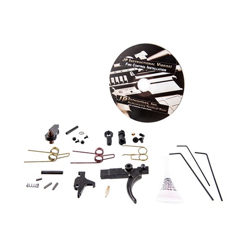 SPECS: Steel, black oxide finish. Models available for rifles with .154" dia. (military and current commercial rifles) or .169" diameter (Colt rifles) hammer and trigger pin holes. Measure your pins and select the correct kit. NOTE: Will not fit Colt rifles with pinned-in full-auto sear block. JP recommends JPFC-2 trigger for those installations. Kit includes trigger, hammer, disconnector/sear trigger spring, yellow hammer spring, red hammer spring, safety assembly, (2) anti-walk pins, disconnector spring, instructions, and DVD with video showing step-by-step installation.