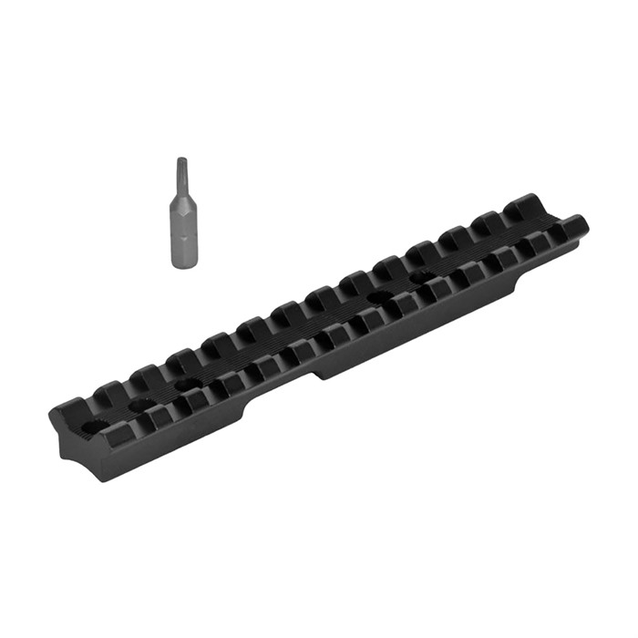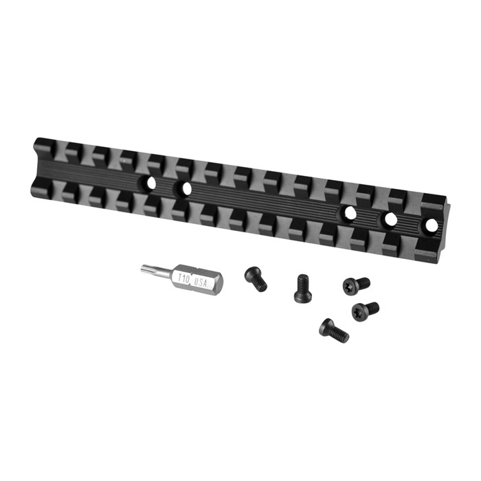 - Les fentes transversales Picatinny s'étendent sur toute la longueur du rail, offrant une flexibilité lors du montage des anneaux de lunette et d'autres accessoires.