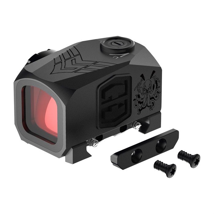 From the depths of the swamp, comes a beastly dot sight, prepared to redefine your expectations of optics-ready shooting. After over 2 years in the making, introducing the Kraken 1x16 Closed Emitter Dot Sight. This heavy-duty dot can take on the elements and unexpected situations with it’s 7075 aluminum body and outer waterproof lenses. Don’t worry about the unique side-bolted footprint Kraken has for increased stability, we provide RMR and MOS footprint adapter plates out the box. Backed with our Shake ‘N Wake tech and a CR2032 battery, Kraken will keep the lights on when you need it. Ideal for multiple applications and ready to take a beating from the most heavy-handed warriors out there, we dare you to release the Kraken.