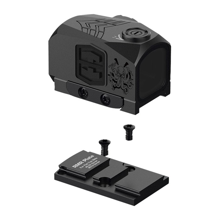 Ne t'inquiète pas pour l'empreinte unique à boulons latéraux du Kraken, qui offre une stabilité accrue. Nous fournissons des plaques adaptatrices pour les empreintes RMR et MOS directement dans la boîte.