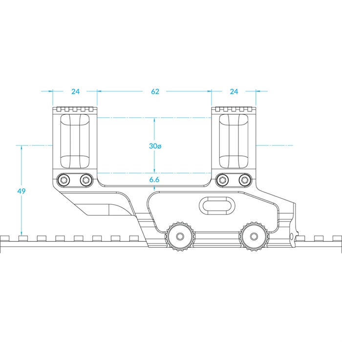 LEAP/08 State of the art 30mm scope mounts. Designed for shooters who want the lightest, stiffest, and easiest to use quick-detach scope mount possible. The LEAP/08 base incorporates different structural elements to maximize overall performance. A large diameter tubular section up front to resist torsion from side impacts, and a very wide I-beam bridge in the rear to resist recoil induced oscillations. Every Leap mount is CNC milled from 7075-T6 Aluminum billet, which has vastly superior mechanical properties to 6061-T6, and is used where ultimate strength and durability outweigh cost considerations. ViseRing™ Designed from the ground up to be lighter, lower-profile, and easier to use than traditional split rings. A low-profile design doesn't get in your way of viewing or manipulating your scope's adjustment turrets. A pair of tapered CNC machined screws lock into the base, bolstering structural rigidity. Wider than competing designs, providing more surface area to safely and securely hold your scope. A high-strength, multi-link hinge eliminates the uncertain and tedious setup required by split rings. LEAP mounts have no protruding levers, bolts, or knobs to rap your knuckles, or get caught on clothing, gear, and surroundings.