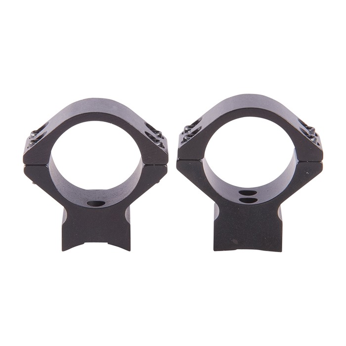 SPECS: 7000 series aluminum, black, anodized, matte finish. Accepts 1" dia. scopes, unless otherwise listed in fits column for 30mm dia. scopes. Height from bottom of ring to top of receiver: Low - .400" (10.1mm), Med - .500" (12.7mm). High - .640" (16.3mm), X‑High - .740" (18.8mm). Approx. weight 2.1 oz. (59 g). Some heights vary, see chart below. Rem. 700 also fits 721/722/725 and 40X models. Rem. Model Seven fits receivers with four screw holes. Savage AccuTrigger fits round top centerfire receivers with AccuTrigger. Win. 70 fits .860" rear hole spacing only.
