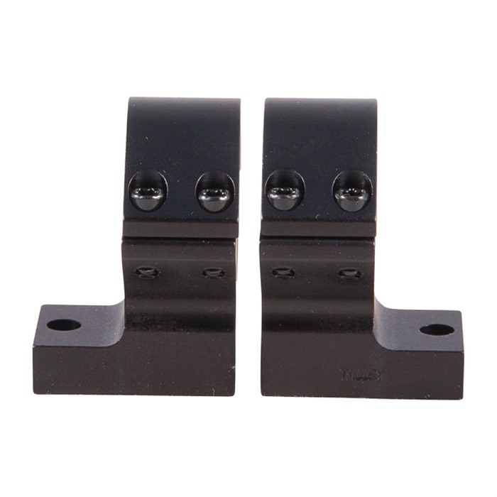 SPECS: 7000 series aluminum, black, anodized, matte finish. Accepts 1" dia. scopes, unless otherwise listed in fits column for 30mm dia. scopes. Height from bottom of ring to top of receiver: Low - .400" (10.1mm), Med - .500" (12.7mm). High - .640" (16.3mm), X‑High - .740" (18.8mm). Approx. weight 2.1 oz. (59 g). Some heights vary, see chart below. Rem. 700 also fits 721/722/725 and 40X models. Rem. Model Seven fits receivers with four screw holes. Savage AccuTrigger fits round top centerfire receivers with AccuTrigger. Win. 70 fits .860" rear hole spacing only.