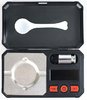 Les commandes faciles à utiliser te permettent de faire fonctionner l'affichage LED lumineux, et la balance peut gérer jusqu'à 1500 grains. De plus, des ports sont fournis pour les câbles Micro USB, USB Type C et Lightning.