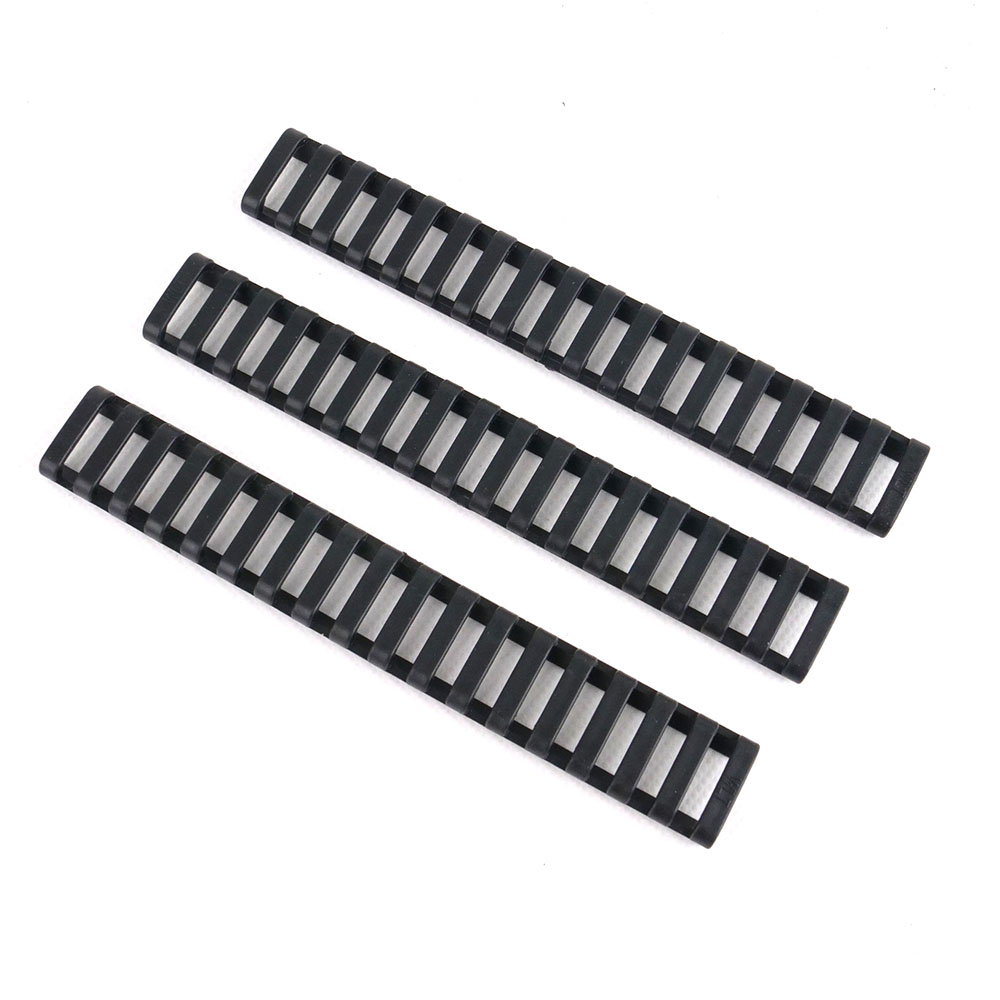 Le Ladder Picatinny Rail Cover 18-SLOT offre une couverture élégante et discrète pour tes rails Picatinny 1913. Ce pack comprend trois panneaux de rail de style échelle de 17,8 cm de long, offrant une couverture ample pour un système de rail quad standard.