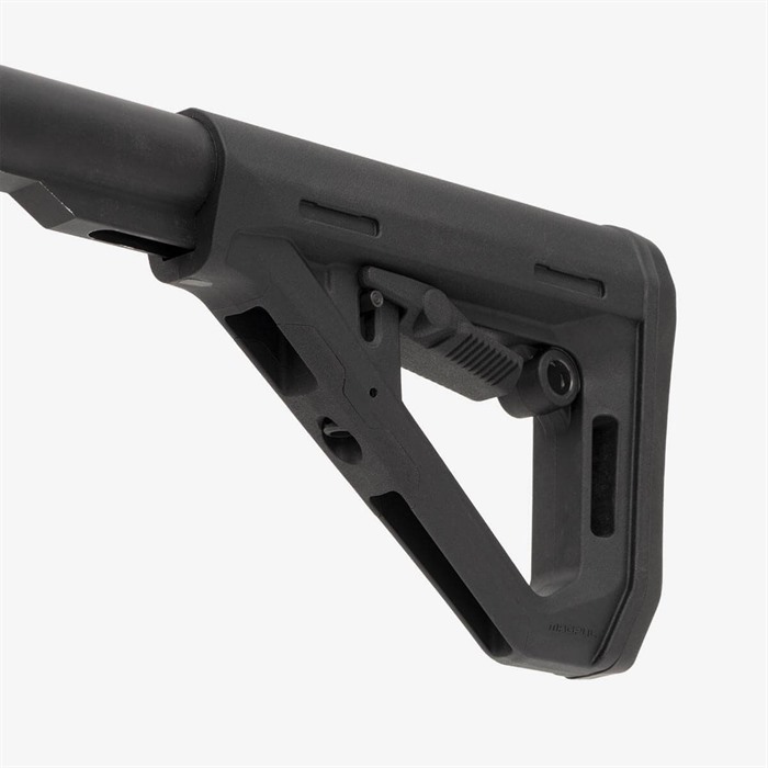 The DT Carbine Stock is a drop-in replacement buttstock for AR15/M16/M4 carbines (or comparable platforms) equipped with Mil-Spec profile receiver extensions. It merges the best features of the SL and CTR product lines with its new dual tensioning technology, which provides greater strength and security for a more rugged and stable platform that’s easy to adjust. The DT Stock is an A-frame style carbine stock that features an auto-engaging friction lock that’s reflexive and inert during adjustment. This produces additional tension on the buffer tube, providing extra tight lockup that minimizes movement between the stock’s lock pin and receiver extension. The result is increased durability in case of severe impacts and quick, smooth, and frictionless length-of-pull adjustments on the fly. Other features include a unique, non-slip butt-pad that matches the footprint of the SL line and incorporates the optimized curvature from the CTR, an ambidextrous adjustment lever, a rotation-limiting QD sling mount, and a 1.25” footman’s loop. The DT is also compatible with legacy Magpul CTR Cheek Risers as an accessory, making it not only one of their sturdiest AR stocks, but also one of the most adaptable. Made in the USA Improves ease of adjustment while securing LOP placement, limiting secondary movements, and improving durability Single, anti-snag ambidextrous control lever Newly designed non-slip butt-pad with optimized curvature allows for easier shoulder transitions and better fit when using body armor Sloping cheek weld combines a slim profile with user comfort Side mounting slots accept optional Magpul CTR Cheek Risers Compatible with Magpul ASAP®, ASAP® QD and other receiver-mount sling attachments Rear 1.25" sling loop Rotation-limiting, integral push-button QD swivel sling mount accommodates up to 1.5" swivels (ambidextrous) Compatibility: Mil-Spec sized carbine receiver extension tube (not included) from manufacturers such as Colt, LMT, Ruger, S&W, SIG, and others LOP, M4 Collapsed: ~10.5 in. LOP, M4 Extended: ~13.8 in. LOP Adjustment Range: 3.3 in. Length, max: 6.9 in. Weight: 9.7 oz. Weight, w/ receiver extension~13.7 oz. *Specifications based on standard-length (flat-back) M4 Carbine receiver extension and may vary depending on tube manufacturer. NOTE: There are two basic sizes of M4 Carbine receiver extensions (buffer tubes): Mil-Spec and Commercial-Spec. The DT Carbine Stock will only fit with the common Mil-Spec tube.