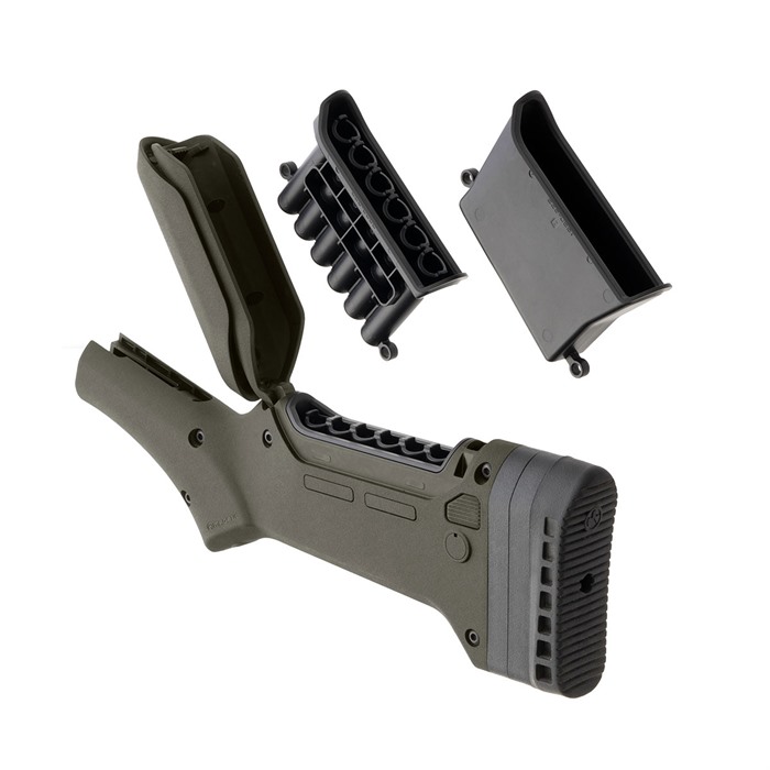 The ELG M-LOK Stock is designed to provide Marlin lever-action rifle shooters a stock with maximum adaptability that optimizes their iconic firearm. With adjustable length-of-pull (LOP) and comb height for various types of optics, storage of extra ammunition or accessories in a weatherized portion of the stock, and the ability to attach various Magpul M-LOK accessories and slings, Magpul brings new capability to the lever- action rifle. The stock allows for a one and a half (1.5”) inches of overall LOP adjustment (from 12.5” to 14.0” in 0.5” increments. The stock ships with a cheek riser and 2 x 0.25” shims for a total comb height adjustment of 0.75”, which attaches to the internal storage compartment door. The stock has an internal storage area, complete with a quiver for six (6) .45-70 Gov’t or 30-30 Win cartridges, and an open storage compartment insert. The stock also accepts Type 1 or Type 2 QD cups for a mounting a sling, and two (2) M-LOK slots reside on each side of the stock for further accessory mounting options such as an ammo saddle. Rounding out the stock’s state-of-the-art feature set is a sling swivel located in the bottom of the pistol grip which allows for shorter slings and a higher muzzle-down carry option. Adjustable LOP (1.5” total adjustability in 0.5” increments) and comb height (0.75” total adjustability in 0.25” increments) On-board ammo storage that is modifiable to other storage needs Includes both a quiver for six (6) .45-70 Gov’t or 30-30 Win cartridges and an open storage compartment insert M-LOK slots for accessories Proprietary recoil pad Sling-swivel on pistol grip allows for easy carry COMPATIBILITY - The stock is compatible with the Marlin 1895, 1894, and 336 receivers. Pre-Ruger® and Remington-built Marlin rifles are compatible with this stock. Cheek Height Adjustment Range - Adjustable by 1/4" increments to 0.75" with cheek riser and spacers LOP Adjustment Range - 12.5" - 14.0", in half-inch increments Length - 12.4 in. Length, max -13.9 in. Height, max - 5.2 in. Weight - 1.25 lbs, at max LOP and no cheek risers Width, max - 1.5 in.