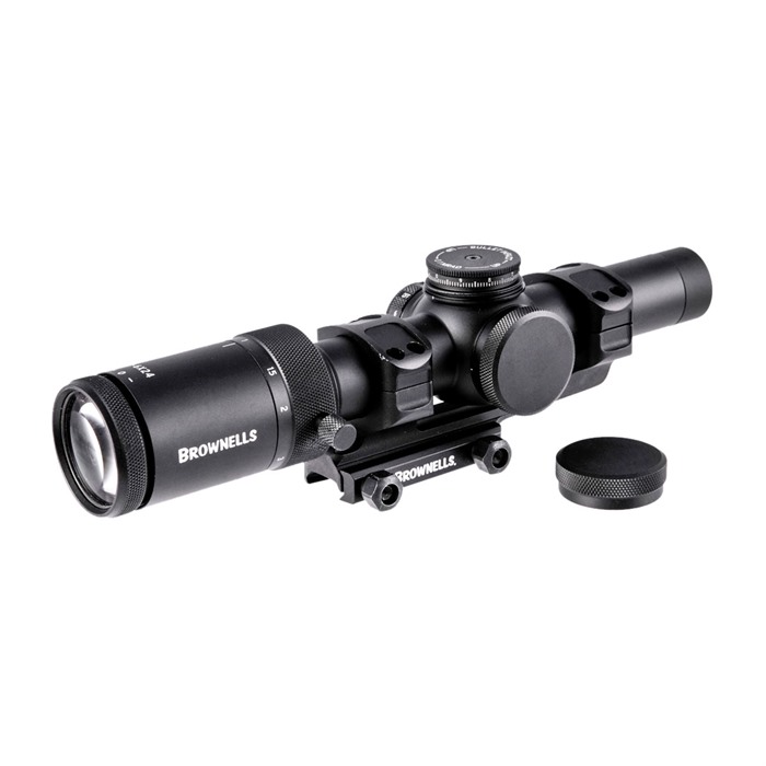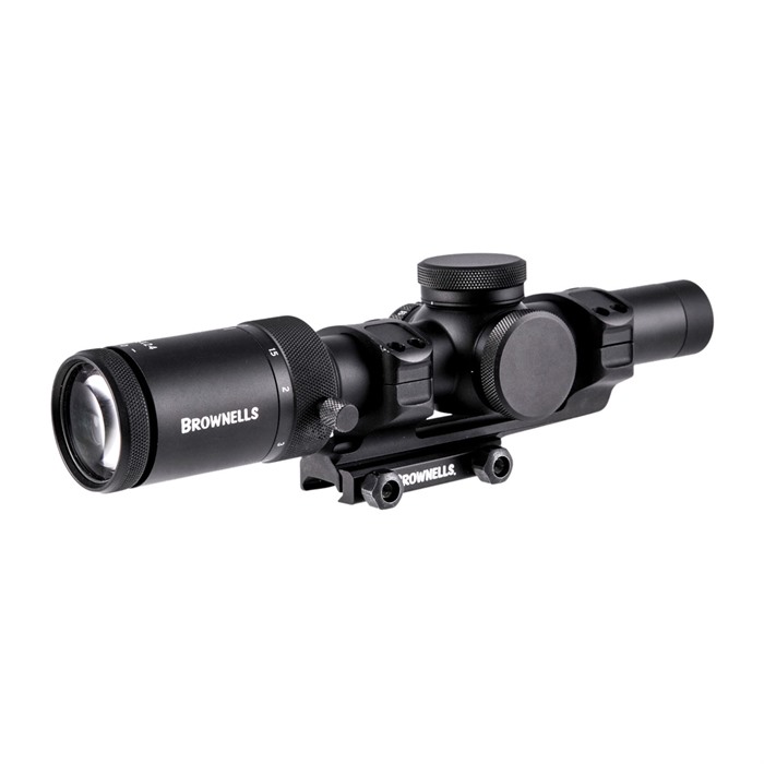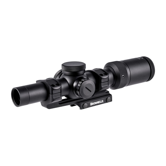 - Assemblé au Japon : Cette lunette 1-6x24 est assemblée pour Brownells au Japon, utilisant du verre avec des lentilles multicouches et un réticule gravé dans le verre.