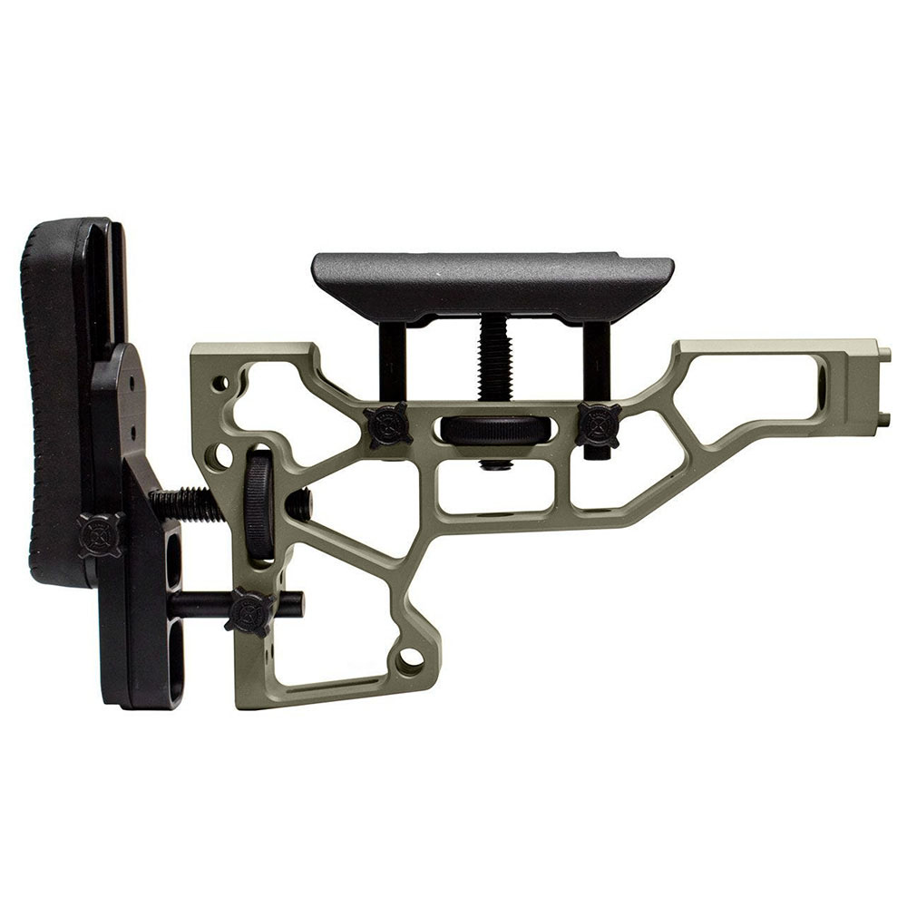 - Ajustement : Ajustez le reposejoue et le pad de crosse selon votre position de tir préférée. Les réglages horizontal, vertical et d'inclinaison doivent être effectués sans outil pour un confort optimal.