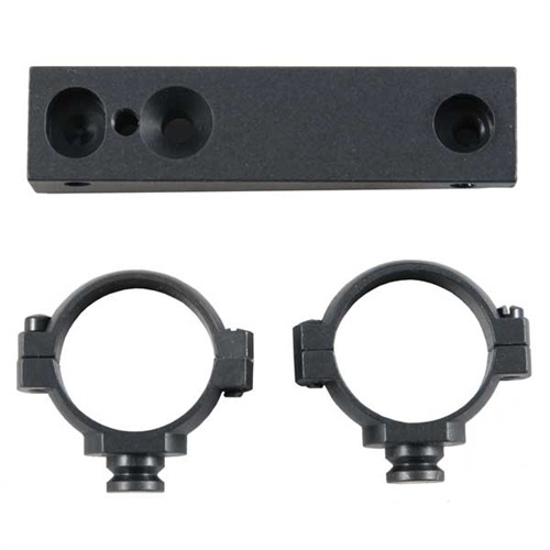 No drilling, tapping or bolt modifications. Aluminum base replaces the rear sight, and accepts a long eye relief, scout or handgun scope. Includes S&K, horizontally split steel rings.