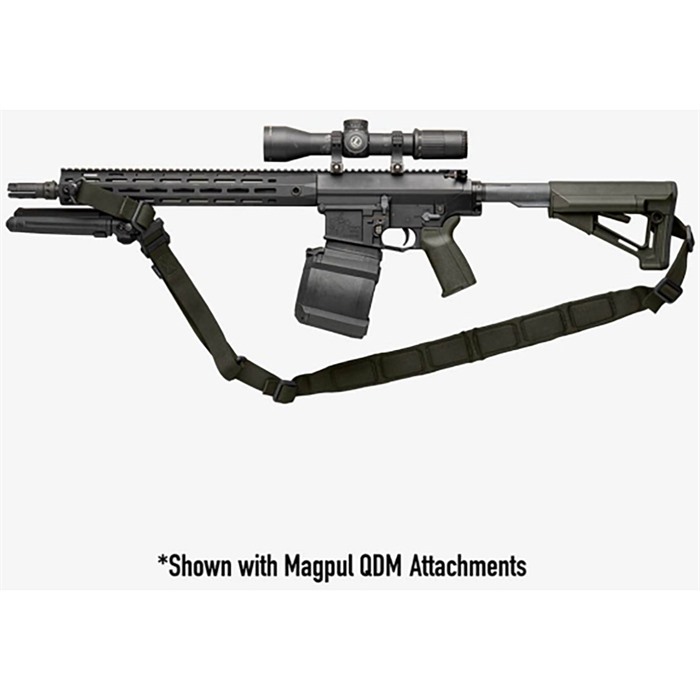 The MS1 padded sling is the latest addition to the Magpul line of rifle slings. By adding a padded section of variable-width tubular webbing to the already proven MS1 sling, this new product provides more comfort to the user when carrying heavy weapons. Other padded slings simply sew the pad onto or around an already existing sling. What Magpul has done is taken a section of variable-width webbing of our proprietary weave and stitched a high-grade, ripstop coated, closed cell foam pad to the inside of the sling. This ensures that the pad will never move inside of its housing and because the taper of the sling is woven, not stitched, the padded section has no known points of failure. By removing the structural stitching from padded slings, Magpul has created a sleek and streamlined solution that exceeds all others in durability and aesthetics.