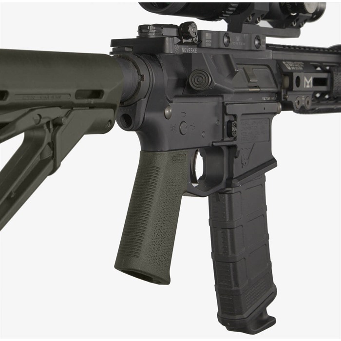 SPECS: Reinforced molded polymer, Black, Flat Dark Earth, O.D. Green, Dark Earth or Gray. Fits standard mil-spec AR-15/M16 lower receiver. Also fits most AR-style .308 rifles that accept AR-15/M16 grip. Mounting hardware included.