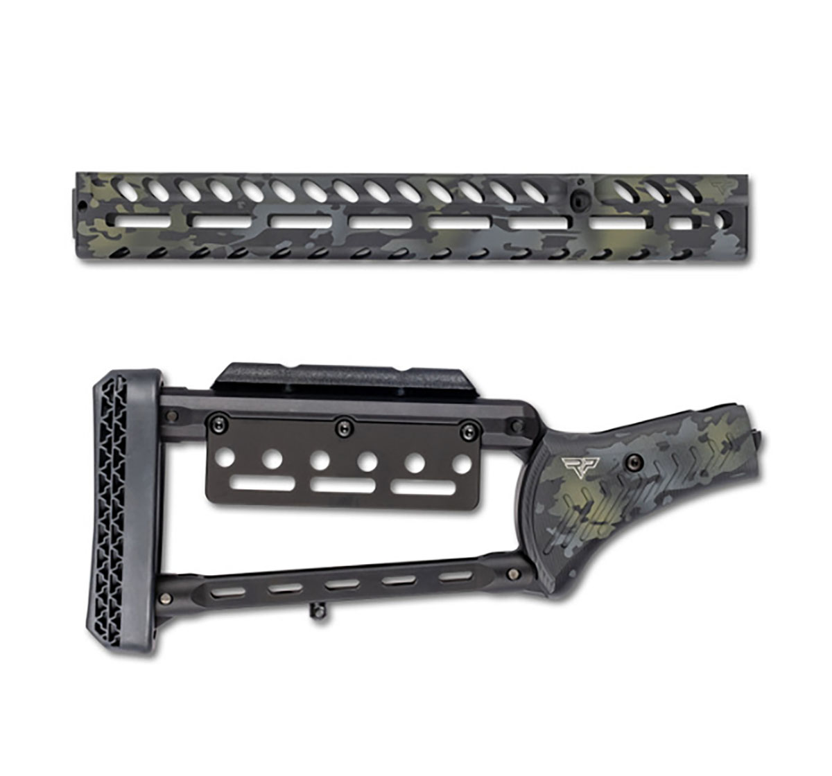 850078134165 Marlin Lever End Cap and Pistol Grip Stock Set – Black Multicam Material: 6061-T6 aluminum – lightweight, durable, and weather-resistant Finish: Black Multicam Cerakote – stylish and highly durable Weight: 624 g (Handguard 375 g, Stock 249 g) 1. Ranger Point Gen 2 Handguard (End Cap) Length: 33.7 cm (13.25 inches) Features: M-LOK accessory slots on the sides and bottom QD sling swivel ports and a threaded hole for a traditional sling stud Textured cutouts for optimal control Mounting: Includes tenon, screws, and installation hardware 2. Ranger Point Pistol Grip Stock Design: Adjustable cheek height with 4 pivot points for iron sights, red dots, or scopes AR-compatible 6-position butt plate with “Dead Blow” recoil reducer Weight: Only 623 g (22 oz) – lighter than standard stocks for perfect balance Length: Adjustable length of pull using 1.27 cm (½ inch) spacersNouvelle commande, délai de livraison d'environ 3-4 mois depuis l'entrepôt européen.