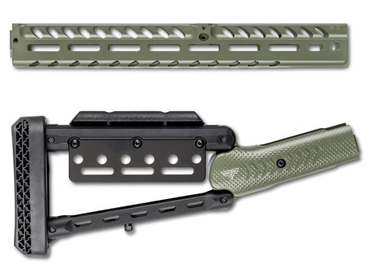 850078134431 Ranger Point M-LOK Handguard and Adjustable Butt Stock for Marlin Does not fit: Marlin rifles with pistol grip or barrel band forearm (Check “Will this fit my rifle?”). Specifications: Weight: Handguard: 5.8 oz (164 g) | Stock: 22 oz (624 g) Material: Precision-machined from 6061 billet aluminum Handguard Dimensions: 13.25" x 1.5" x 1.6" Included in Package: 1x M-LOK Handguard with barrel band tenon, 2 screws, 4 mounting set screws 1x Adjustable Butt Stock with cheek riser, M-LOK accessory panel Key Features: 24 M-LOK slots and 4 Flush Cup holes for sling swivels Superior rigidity, ergonomic comfort, and DIY-friendly installation Adjustable cheek riser and AR-style butt plate with DEAD BLOW recoil padNouvelle commande, délai de livraison d'environ 3-4 mois depuis l'entrepôt européen.