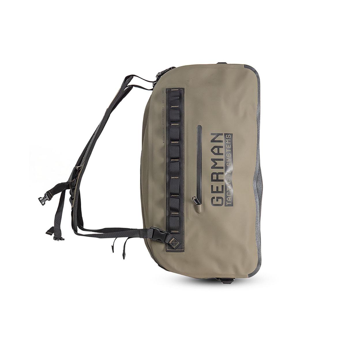 0726529840704 The Mission Carrier from German Tactical Systems is built for those who carry more and demand the same rugged reliability found across our waterproof gear line. Designed for field operators, outdoor professionals, and anyone on the move, this Hybrid Duffle Bag offers maximum versatility, comfort, and protection from the elements. Hybrid Carry System: The Mission Carrier can be carried as a traditional duffle or worn like a backpack. The detachable straps can be crossed over or secured together with integrated Velcro loops, allowing you to customize your carry setup based on the mission. Waterproof Protection: Built from heavy-duty, waterproof materials that shield your gear from rain, mud, and harsh environments. Perfect for field use, travel, or everyday tactical applications. Spacious Main Compartment: A large waterproof main compartment with internal securing straps keeps your gear organized and stable, even in motion. Internal Storage: Includes two large inner side pouches for structured organization of smaller equipment, tools, or clothing. External Side Pouches: Additional outer compartments provide quick access to frequently used items without opening the main storage area. Full-Length Utility Loops: Both sides feature continuous loops designed for attaching carabiners, accessories, or securing the Mission Carrier to vehicles, boats, or racks during transport. Adaptable and Rugged: Whether you’re on deployment, at the range, or heading out for a weekend operation, the Mission Carrier stands up to heavy use while keeping your gear dry, accessible, and secure. Volumen = 51 L Length = 59cm Width = 27cm Height = 32cmDélai de livraison environ 3-6 jours.