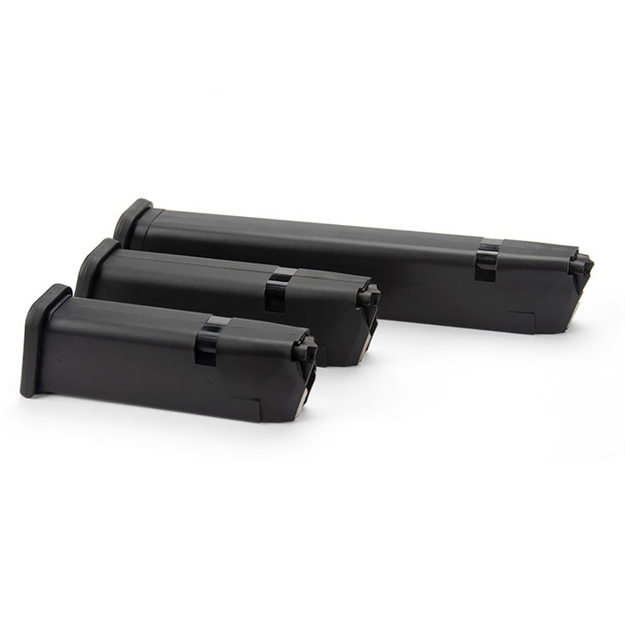 - Disponibles en 9mm avec des capacités de 15, 17 et 31 cartouches.