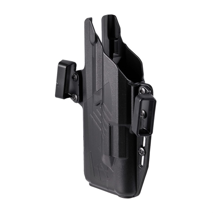 La courbure qui épouse le corps de ce holster est réalisée à l'aide de boucles de ceinture modulaires. Chaque holster comprend trois paires de boucles de ceinture de 1,5” (inclinaison à 10 degrés à gauche, à 10 degrés à droite et inclinaison à 0 degré), permettant à l'utilisateur de configurer le corps du holster ambidextre pour un usage gaucher ou droitier, avec soit une inclinaison de 0 degré, soit de 10 degrés.