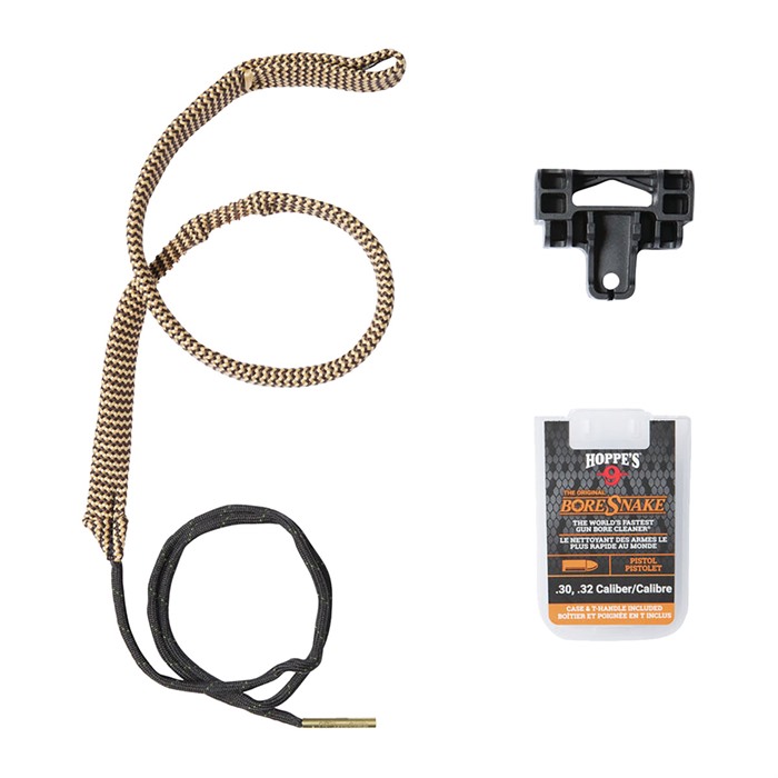 The Pistol Bore Snake scrubs and cleans the barrel of your handgun in a single step. The built in, bench-quality phosphor bronze brush and braided floss scrub, clean and oil the bore in just minutes. Apply a few drops of bore cleaner to the front of the cord and oil to the end. Drop cord into the bore and pull through five times. Calibers: .22, .30, .32, 9mm, .357, .380, .38, .40, .41, .44, .45 The Pistol Bore Snake is washable and reusable and the lightweight design folds neatly away in new "den" carrying case for easy storage.