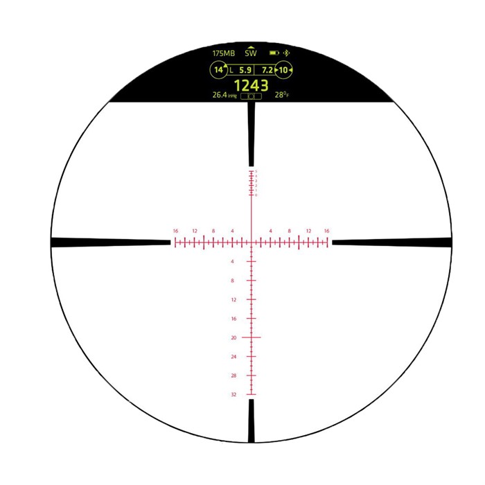 Alors, que doivent faire les tireurs en utilisant la lunette Revic Optics PMR 428 4.5-28x56mm ? Il te suffit de régler la tourelle d'élévation jusqu'à ce que l'affichage tête haute indique la distance correcte de la cible. Une fois la distance trouvée, le réticule de la lunette indiquera le point de maintien correct. Il ne te reste plus qu'à appuyer sur la gâchette !
