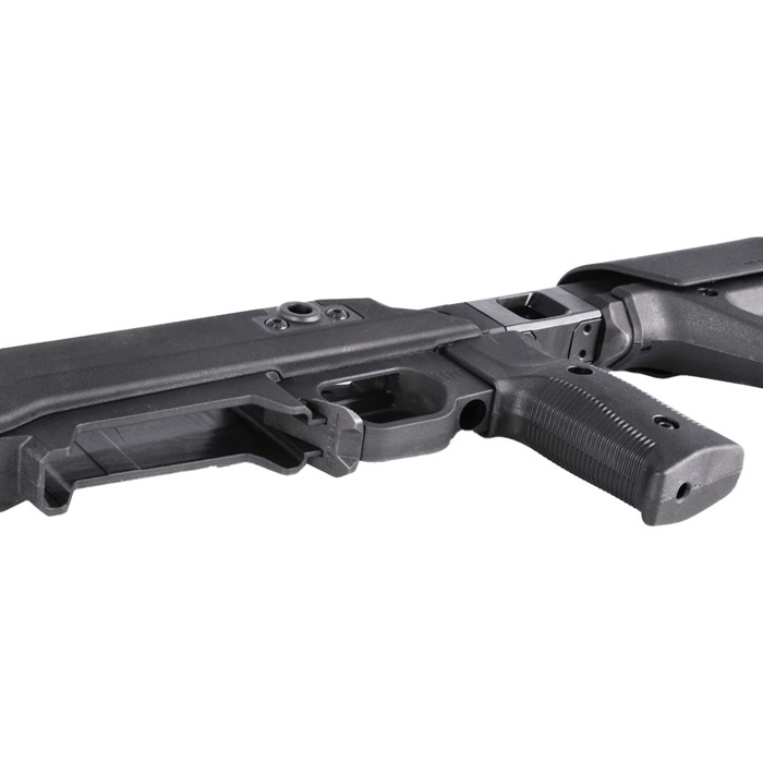 Compatible avec les Remington® 700 Long Action et d'autres empreintes Remington 700 Long Action. La crosse et le repose-joue doivent être retirés sur le Pro 700 LITE avant de pouvoir retirer le boulon de l'action. Livré avec le MAG698 (Magnum Long Action AICS 5-round PMAG).