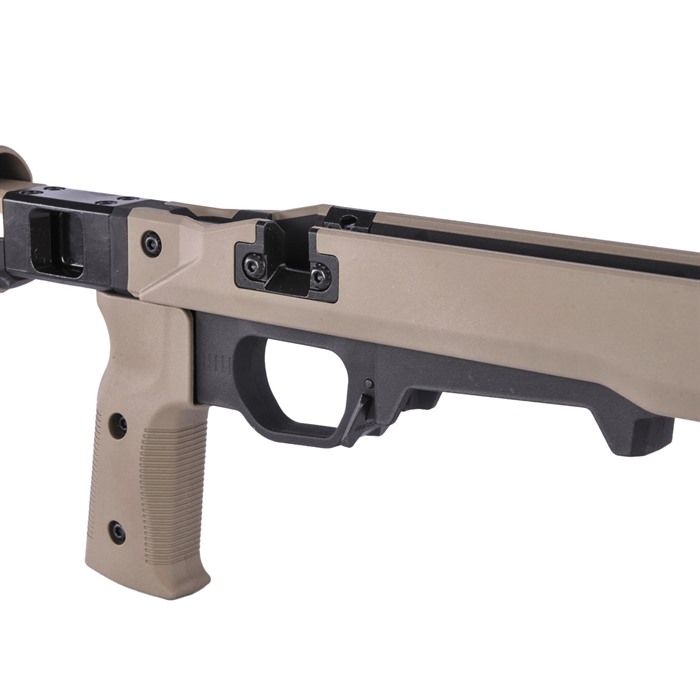 - Compatible avec les magazines de type AICS, avec un relâchement de chargeur ambidextre et un stop de barricade à l'avant.
