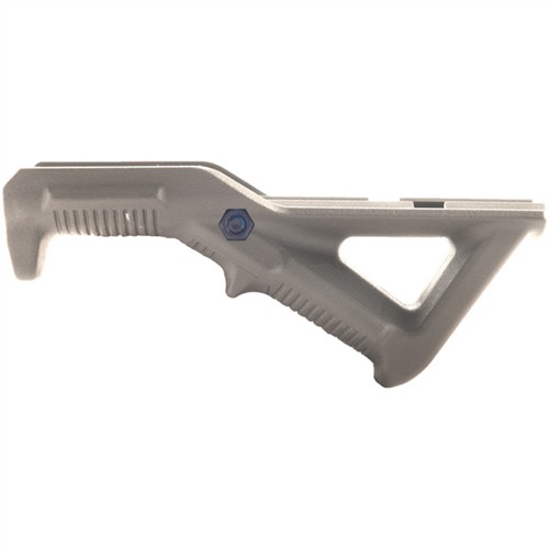 Low-profile forward grip/hand stop takes advantage of natural body mechanics to give the shooter more precise control, faster pointing, and less operator fatigue. The Magpul AFG™ (Angled Fore-Grip) positions the support hand close to the centerline of the bore for maximum recoil control to aid in fast, accurate follow-up shots. Provides a consistent reference point for finding the correct hand position quickly when mounting the weapon under stress. The natural, ergonomic hand position with the palm facing up results in better blood flow than the “clenched fist” stance often used with vertical grips that leads to fatigue and loss of sensation during long periods in the ready position. Improves on the “thumb break” hold often used with standard vertical grips by allowing the thumb to rest comfortably alongside the top rail, pointing forward, with the rest of the hand in full contact with the forend. Heavy-duty reinforced molded polymer construction stands up to the hard knocks of tactical operations, and deep, molded-in grooves help you maintain a firm grip even with wet hands. Interchangeable inserts give the choice of a straight, uninterrupted gripping surface or one with a convenient ledge to support the index finger. Slides over any Picatinny-style rail and locks securely in place with a hardened steel crossbolt. The original AFG1™ provides a large grasping surface and covers approximately 5½" of rail.