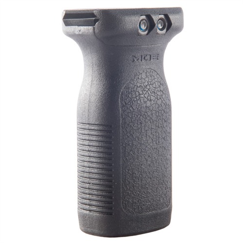 Lightweight vertical grips position your support hand close to the barrel to help you maintain maximum weapon control at all times. Ergonomically shaped design is optimized for use with the “thumb break” method of grasping the weapon, yet works just as well with a traditional vertical grip stance. Aggressive horizontal serrations on the front and back, plus crackle texturing on the sides ensure a secure grasp in all weather conditions. RVG™ (Rail Vertical Grip) combines the MVG’s ergonomic features with a conventional Picatinny attachment system for use on standard railed handguards. Includes an adapter that enables installation on many non-railed forends, too.