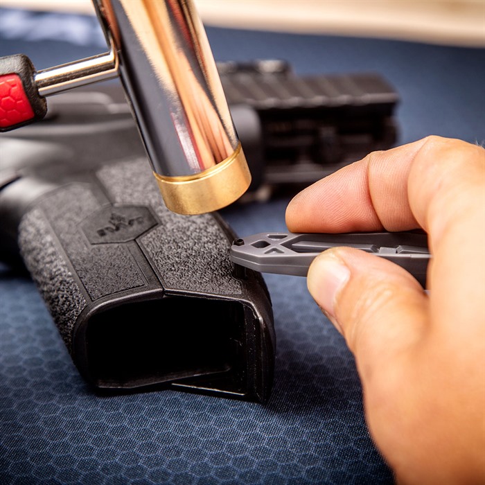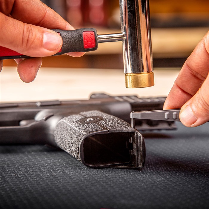 Le STANDARD BRASS & STEEL PIN PUNCH SET est un ensemble de pin punches idéal pour le gunsmithing, accompagné d'un outil d'alignement des goupilles. Ce kit avancé te permet de retirer et d'installer en toute sécurité les goupilles d'armes à feu.