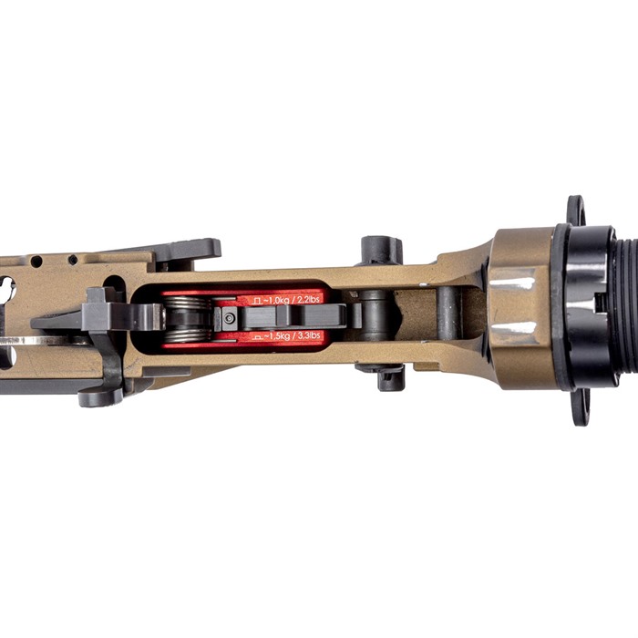 Les vis de fixation sont protégées contre les chutes et les pertes grâce à un verrou de vis intégré. Le poids du déclencheur peut être ajusté entre >2.2 livres (1000g) et >3.3 livres (1500g) en utilisant des détentes prédéfinies, sans nécessiter d'ajustement. Le poids de déclenchement réglé peut être lu dans le boîtier.