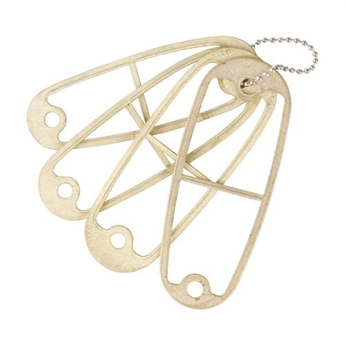 Ces gabarits en laiton te permettent de repérer l'emplacement des plaques de renforcement en acier dans tous les pads de recul Pachmayr à côté fermé. Cela t'évite de les couper lors de la mise en forme de ton pad de recul.