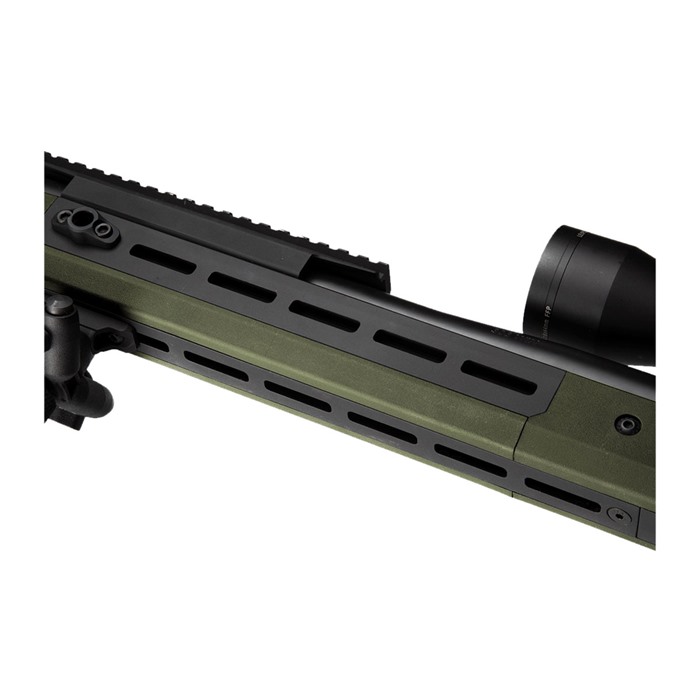 Basé sur un squelette en aluminium plein usiné, le châssis Pro 700 est revêtu de polymère Magpul pour le confort et la réduction du bruit. Avec l'échange d'une plaque de découpe de boulon, un appui-joue réversible et une charnière réversible, le châssis est entièrement ambidextre, garantissant que les tireurs gauchers peuvent également en profiter.