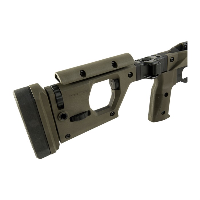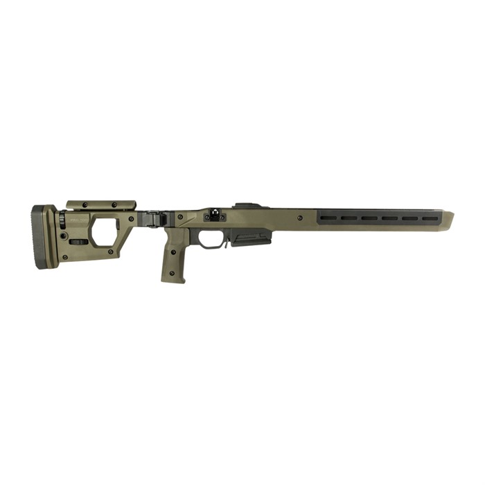 Le grand pontet du Pro 700 accepte la plupart des gâchettes courbées ou plates d'origine et de rechange, et peut être utilisé avec des gants. Le Magpul Remington 700 Pro Chassis s'adapte à un contour de canon MTU et est disponible en noir, terre foncée plate et vert OD. C'est une excellente mise à niveau pour une arme existante ou pour ta prochaine construction !