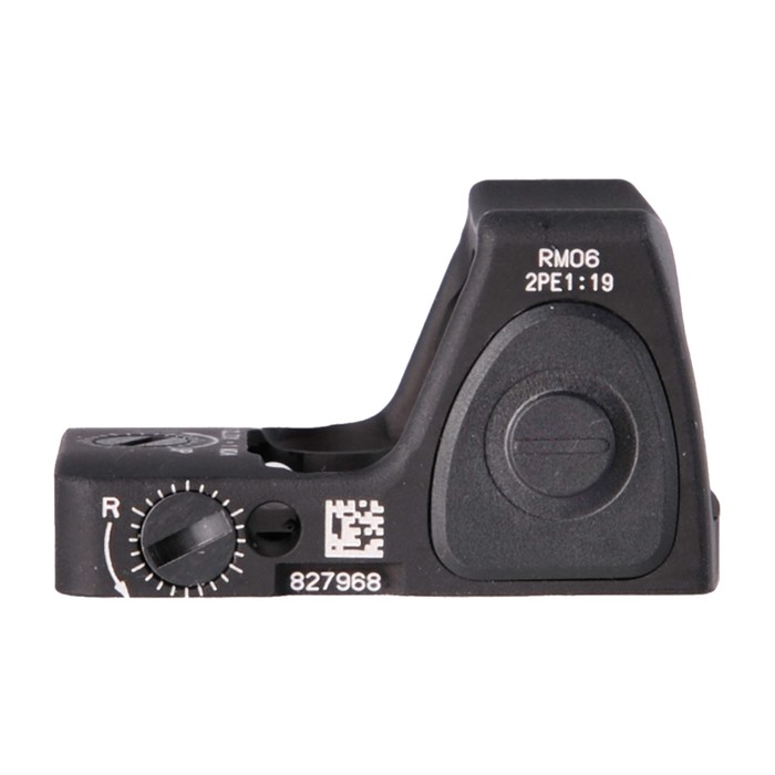 RMR TYPE 2 RM06 3.25 MOA ADJUSTABLE LED REFLEX SIGHT The RMR Type 2 is designed with a patented housing shape that absorbs impacts and diverts stresses away from the lens to increase durability. It also offers redesigned and upgraded electronics that have been proven to perform when mounted on slide ride pistols and other small arms. It’s suitable for military, law enforcement, concealed carry self-defense, target shooting, and hunting applications. The RMR® Type 2 Adjustable LED sight puts the illumination control in the user’s hands. Easy-to-use buttons on the sides of the optic allow the user to adjust the illumination brightness, toggle between manual and automatic modes, and power down the RMR for storage. The automatic mode functions the same as the LED RMR version. If a manual mode has been chosen, the RMR will remain in manual mode for 16.5 hours following the last push of a button. After 16.5 hours, the optic will default back to the automatic mode so that the RMR will be ready for your next mission or task. All RMR Type 2 Adjustable LED sights are compatible with night vision devices, with the 3.25 MOA dot size being the most popular. Additionally, the user can also lock out the buttons so that the RMR functions in automatic mode only. This ensures that inadvertent button pushes do not cause a loss of aiming solution. The 3.25 MOA dot in the RM06 is the most versatile and popular of all RMR dot sizes. The dot is small enough to allow accurate shooting at range while also being big enough to locate quickly. FEATURES: OUTSTANDING DURABILITY Unique, patented housing shape diverts the force of an impact away from the lens, greatly increasing durability. DUAL-ILLUMINATED OPTION Tritium-phosphor lamp illuminates reticle in low-light conditions and fiber optics automatically adjust the brightness level and contrast to available light conditions. BUILT TO HANDLE THE WORST Designed to be waterproof to 20 meters (66 ft.) BATTERY CONSERVATION MODE Automatically adjusts aiming dot to ambient lighting conditions after 16.5 hours (Automatic LED & Adjustable LED RMR only). TRUE-COLOR, MULTI-COATED LENS Creates a wide-band light transmission for minimal change in target area color. ADJUSTABLE LED OPTION Easy-to-use buttons on the sides of the optic allow the user to adjust the illumination brightness, toggle between manual and automatic modes, and power down the RMR® for storage. EASILY ADJUSTABLE WINDAGE/ELEVATION No need for special tools. 1 MOA per click. MULTI-PLATFORM-FRIENDLY Multiple primary applications including rifle, pistol, shotgun and carbine, or use as a secondary sight with a magnified optic. UPGRADED ELECTRONICS Ruggedized battery contacts and electronics ensure performance and survivability in harsh environments (Automatic LED & Adjustable LED RMR only). SPECIFICATIONS: Length x Width x Height: 1.8 in x 1.1 in x 1. in (45.72mm x 27.94mm x 25.4mm) Weight: 1.2 oz. (34.02g) Magnification: 1x Reticle Pattern: 3.25 MOA Dot Bullet Drop Compensating (BDC): No Bindon Aiming Concept™ (BAC): No Illumination Source: LED Power Source: CR2032 Lithium Battery Battery Life: Over 4 years of continuous use (when used at 70ºF (21ºC) at setting 4 of 8. *Extreme temperatures (high or low) will affect lithium battery performance. Adjustment: 1 MOA Per Click Housing Material: Forged Aluminum Finish: Matte Black NOTE: The RMR® Type 2 has identical physical dimensions and mounting footprint to that of the original RMR Type 1. If selecting an RMR for mounting on the Glock® MOS, Springfield® OSP, Walther® PDP, or H&K® VP9 Optics Ready, a Trijicon RMR® mounting kit (AC32064) is required.