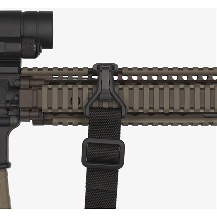 Cette boucle de sangle à profil bas se fixe à n'importe quel rail MIL-STD 1913 Picatinny ou STANAG 4694 de ton garde-main pour fournir un point d'attache sécurisé à l'avant pour la sangle Magpul MS2 ou une sangle clip-on similaire. Elle peut être installée sur le côté gauche ou droit du rail supérieur, ou sur les rails latéraux ou inférieurs pour des configurations de sangle multiples.