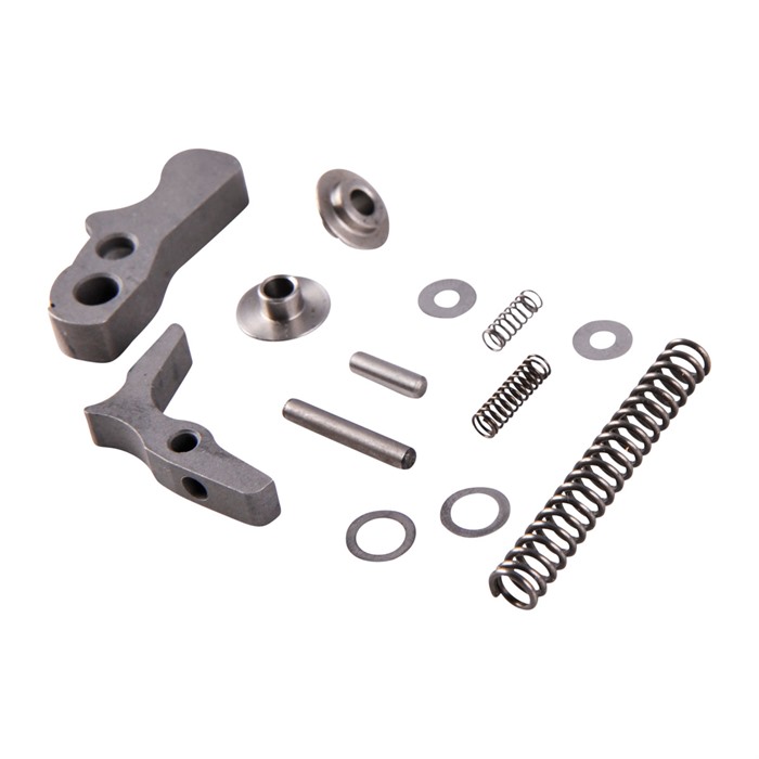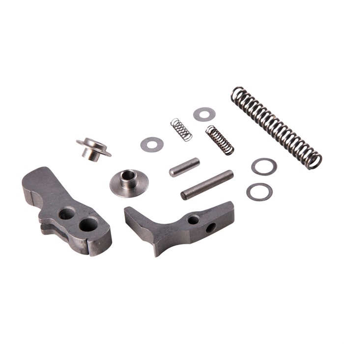 - Passez en revue tous les composants inclus dans le kit : marteau, décrochage, ressort de marteau XP, ressort de déconnecteur de décrochage, ressort de retour de gâchette, (2) cales de gâchette, (2) cales de marteau, pin esclave de décrochage et instructions complètes.