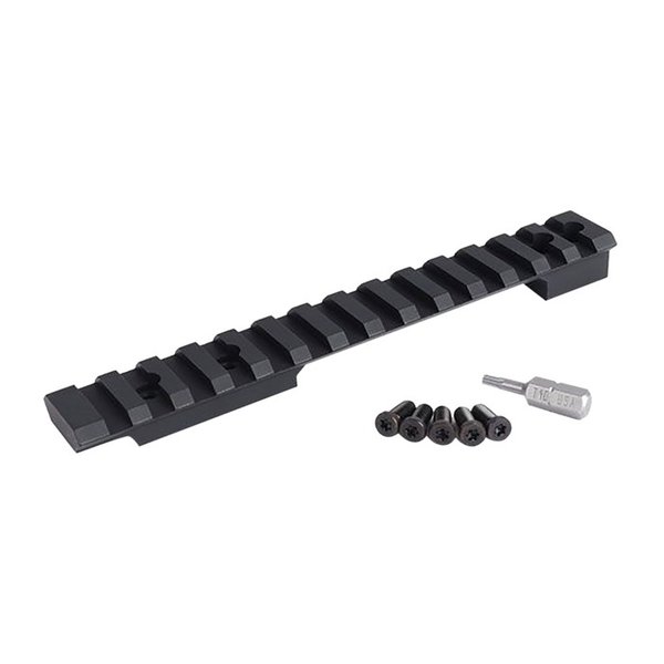 EGW recommande de mesurer l'espacement des trous dans ta réception pour confirmer qu'il correspond aux dimensions publiées. Les fentes transversales Picatinny s'étendent sur toute la longueur du rail, offrant ainsi une flexibilité lors du montage des anneaux de lunette et d'autres accessoires. Le canal central réduit la masse globale du montage. De plus, dans de nombreux cas, il n'entrave pas l'utilisation des organes de visée en fer d'origine.