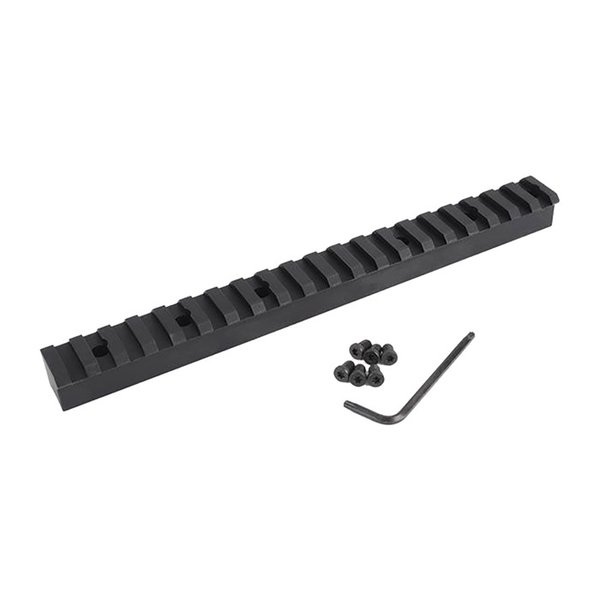 EGW recommande de mesurer l'espacement des trous dans ton récepteur pour confirmer qu'il correspond aux dimensions publiées. Les fentes croisées Picatinny s'étendent sur toute la longueur du rail, offrant ainsi une flexibilité lors du montage des anneaux de lunette et d'autres accessoires.