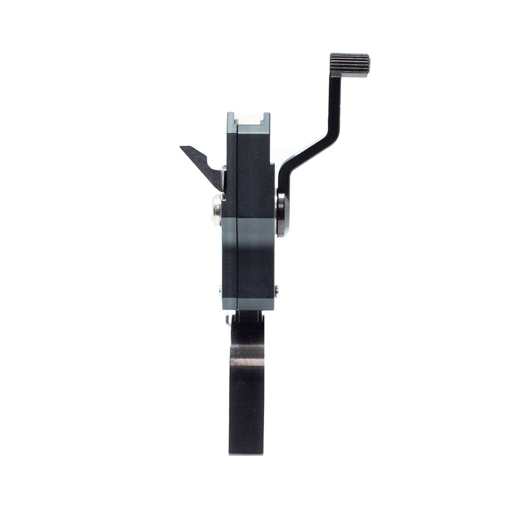 La fonction d'ajustement utilise une vis de réglage accessible de l'extérieur pour les deux étapes. Grâce à la rupture exceptionnellement nette, l'énergie d'activation est inférieure à celle des déclencheurs à friction. La plupart des tireurs rapportent que les poids de traction semblent significativement plus légers qu'un déclencheur à friction du même poids mesuré. Les composants du déclencheur sont assemblés comme un ensemble apparié pour permettre une véritable rupture sans jeu, un surcourse extrêmement courte et offrent une fiabilité exceptionnelle, même dans les environnements les plus difficiles.