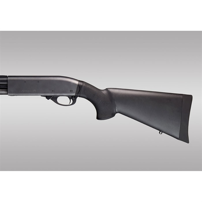 Fiberglass-reinforced, polymer, shotgun stock provides synthetic-stock durability and is overmolded with rubber for a sure grip every time you grab your gun. Rubber is pebble-textured in the gripping areas. Includes recoil-cushioning, butt pad and an integral, sling-swivel stud. Available in standard, factory length of pull or in ShortShot, 12" length of pull for use with body armor or for smaller shooters. Available in sets or individually. Sets and individual components fit 12 gauge only.