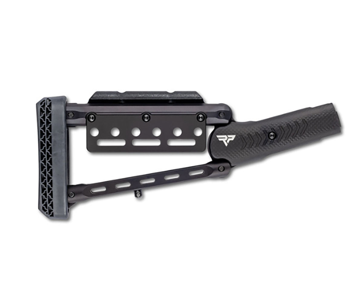 850068664221 The GForce Hugtek Lever Stock Black is a high-quality, lightweight, and durable stock option for GForce Huckleberry lever guns such as the LVR45, LVR357, LVR44, and LVR30. Made from anodized 6061 aluminum, it offers excellent durability while reducing weight to just 595 g (21 oz), making it significantly lighter than the standard wooden stock. Key Features: Material: 6061 aluminum, Type III anodized Weight: 595 g (21 oz), lighter than the factory wooden stock Length of Pull (LOP): Standard 12.5" (31.75 cm), shorter than the original stock. Additional 1/2" (1.27 cm) spacer available for extended LOP. Adjustable Cheek Height: Four pivot points for comfortable aiming with iron sights or mounted optics. AR-Style Buttplate: 6-position design with a Dead Blow recoil pad for optimal recoil reduction. M-LOK Accessory Panel: Includes two sling mount slots for added attachments. Adjustable Cheek Riser: Ensures proper alignment when using taller optics. Included in the package: 1 x Adjustable aluminum stock 1 x Cheek riser 1 x M-LOK sling panel 1 x RPP Dead Blow recoil pad 1 x Hex key
