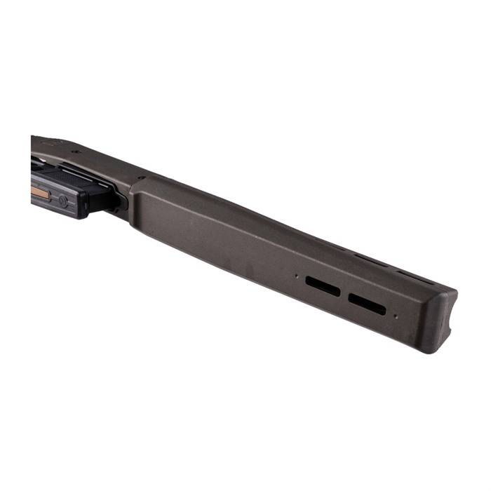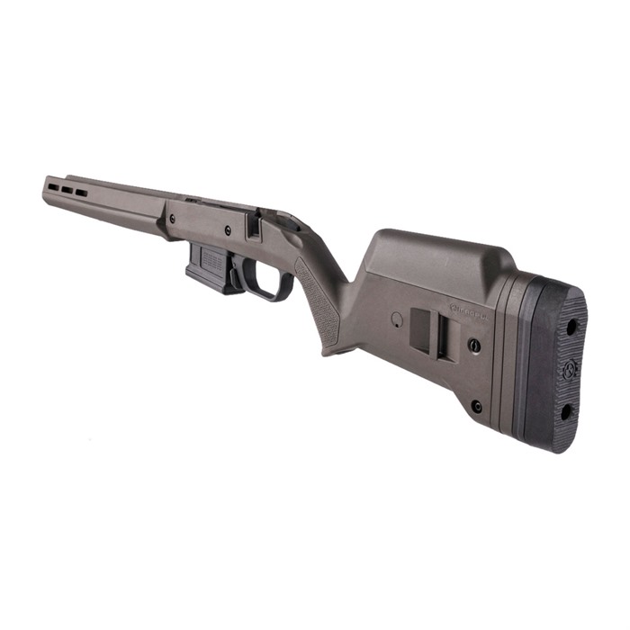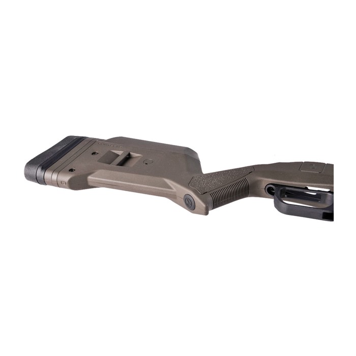 The Hunter 110 Stock – Savage 110 Short Action is the latest addition to the Magpul Hunter stock product line. It features enhanced ergonomics, versions for both right and left-hand actions, eight M-LOK® slots for mounting options, and a fully adjustable length of pull and comb height. These features have been optimally designed to provide a more stable shooting platform, improved user comfort and individual accessory customization. Like its predecessors, the Magpul Hunter 110 features a Type III hard anodized, machine-finished, cast aluminum bedding block that doesn’t require bedding and is a true “drop-in” stock solution. The Hunter 110 is designed for 3rd generation Savage short action Series 10/110 centerfire rifles that have center-feed magazine compatibility and action screw hole spacing of 4.40” (H-prefix and later) with production a date of 2006 and later. The Hunter 110 also includes Magpul’s Bolt Action Magazine Well for optimal functionality with AICS-spec detachable box magazines such as Magpul’s PMAG® 5 7.62 AC (sold separately). FEATURES Reinforced polymer shell with Type III hard anodized, machine finished, A380 cast aluminum V-bedding block. Available for right and left hand actions. Provides AICS-spec magazine compatibility for optimal performance and reliability (magazines sold separately) Made in the USA. SPECS Collection: Hunting Stocks Platform: Savage® 110 Butt-Pad Dimensions: 1.5 in W x 5.0 in H LOP Adjustment Range: 13.0 in, - 15.0 in. (13 in. with no spacers plus up to four half-inch spacers) Weight: 3.3 lbs. Width of Butt, max: 1.5 in. Width of Forend, max: 2.3 in. Compatible with 3rd generation Savage short action Series 10/110 centerfire rifles with center-feed magazine compatibility and action screw hole spacing of 4.40” that began in 2006. Compatible with barrel profiles up to Medium Palma and Savage Varmint barrel contours. Tapered Beam design provides rigidity through the forend and will free-float compatible barrels. Push-button QD swivel compatibility with optional Sling Mount Kits in rear of stock.