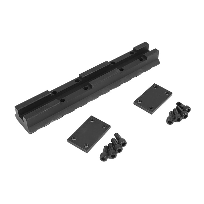 - Les fentes croisées Picatinny s'étendent sur toute la longueur du rail, offrant ainsi une flexibilité lors du montage des anneaux de lunette et d'autres accessoires.