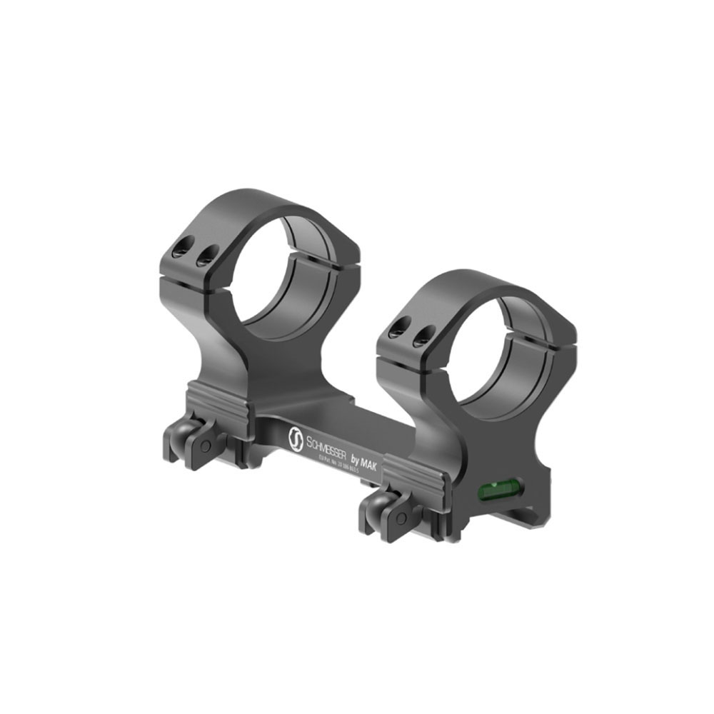 Le montage SCHMEISSER QSM 34mm offre une fixation sécurisée sans outil sur rails Picatinny, avec un niveau à bulle intégré pour une précision optimale.