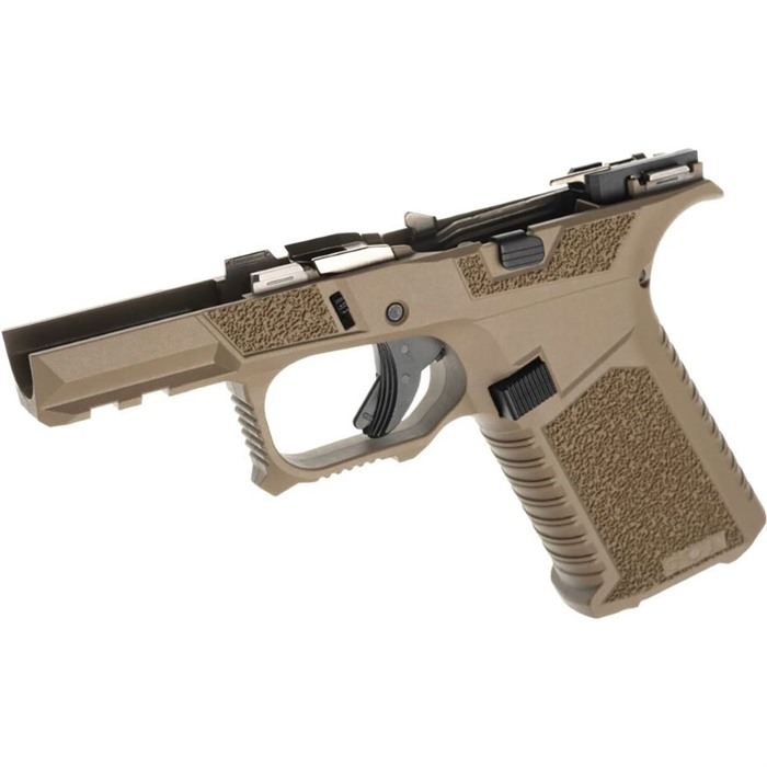 The SCT Manufacturing Glock® Compatible Sub Compact complete assembled frame is going to change the way you build pistols. It is the only frame at this price point packed with this level of features. This is a serialized frame with shooter-oriented ergonomics. Polished stainless steel over molded rails provide the optimal platform that is ready to build. They are made with an industry leading proprietary polymer blend and compatible with Glock® 43X and 48 components. Each frame is assembled using a combination of Glock® OEM and SCT manufactured parts by a certified armorer. The last step of each frame assembly is function testing utilizing a Glock® factory slide checking for safe operation, striker engagement, trigger pull, trigger reset, & magazine function ensuring the end user is left with a frame that needs nothing but a slide assembly right out of the box! FEATURES Fully assembled with SCT SC frame with Glock® OEM and SCT internals. Serrations and index point on trigger guard to help control recoil Serrations on top of beaver tail reduce glare Flared mag well Ambidextrous mag release Thumb Accelerator pad Advanced contour grip with aggressive texturing Modified Factory Picatinny with addition al mounting slot. Extended beaver tail with low profile bore axis Grip angle is the same as Glock® Slide stop guard Larger trigger guard for better access with gloves Recessed contoured mag release area for faster mag changes Multi caliber- Compatible with compact 9mm & .380 Frame assembly includes: SCT SC polymer frame, electroless nickel locking block, OEM trigger assembly, standard polymer magazine catch, magazine catch spring, steel trigger pin, steel locking block pin, standard OEM slide lock, slide lock coil spring, polymer trigger housing pin, OEM trigger housing with ejector, standard slide stop assembly & polished 4.5 lb. electroless nickel trigger connector. Disclaimer: SCT Manufacturing recommends the installation of mating components be performed by a certified gunsmith to ensure proper function and safety. Due to variations in third party parts and accessories, SCT Manufacturing will not be held liable for any damage caused to you and/or your firearm as a result of aftermarket accessory use.