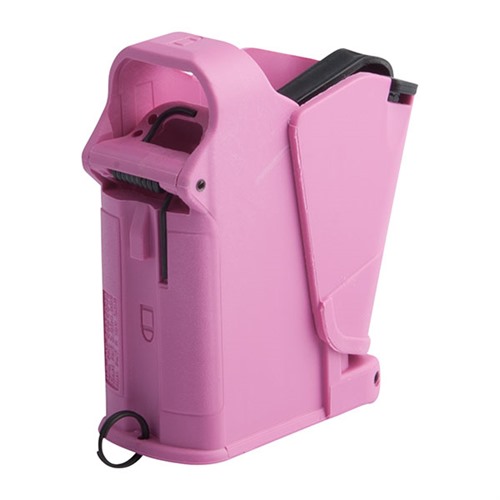 Hand-held loader fills pistol magazines quickly and easily, so you spend less range time loading mags and more of it shooting. Smooth, positive operation protects fingers and thumbs while you load hundreds of rounds painlessly—as fast as one round per second. Also lengthens magazine life by reducing wear and tear on feed lips. Hold the magazine upright with the bottom resting on a solid surface. Place the loader over the top of the mag, press down lightly while squeezing the lever to depress the follower, drop in a round, and work the lever quickly to push it into the mag. Repeat the process until the magazine is full. Constructed from tough, reinforced, black polymer. Locks closed when not in use, so it takes up minimal space in pocket or range bag. UpLula fits single- and double-stack 9mm, .357 SIG, .40 S&W, 10mm, and .45 ACP magazines, plus some .380 mags. Will not load Glock 6-round single-stack .45 caliber, Smith & Wesson 7-round single-stack 9mm, or magazines with less than 8mm between feed lips. Will also need to purchase the UpLula Align Insert.
