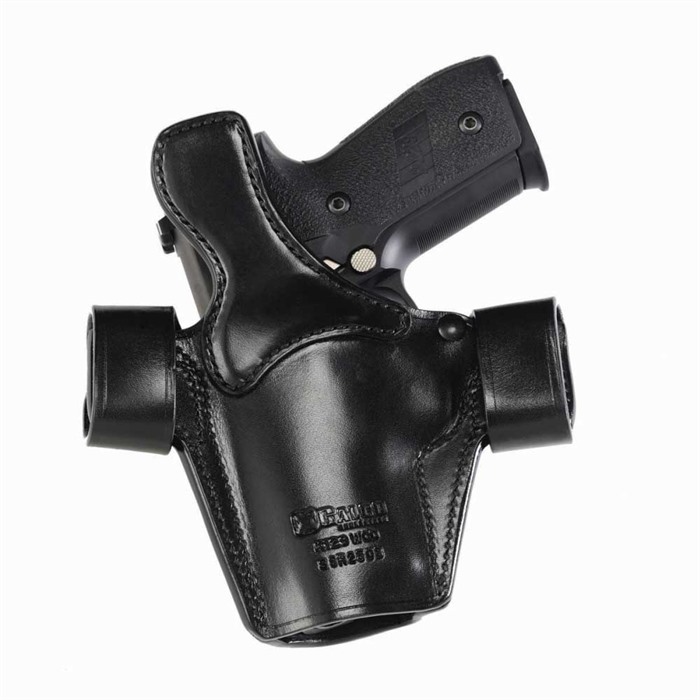 Constructed of premium steerhide, the improved Side Snap Scabbard retains the quick on-off snap loops that fit belts up to 1 1/2”. The open top design remains the same, with the addition of a reinforced mouth for smooth and easy one-handed return to the holster. New to the SSS is a slight butt-forward cant, in contrast to the steeper angle of the earlier version. It keeps the adjustable tension unit and the comfortable, highly concealable forward-molded design of its predecessor, while adding a raised sweat guard to protect both the firearm and the gun carrier. Taken together, these features add up to a holster that is secure and convenient yet concealable with a very fast draw!
