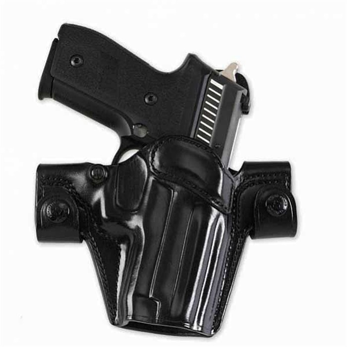 Constructed of premium steerhide, the improved Side Snap Scabbard retains the quick on-off snap loops that fit belts up to 1 1/2”. The open top design remains the same, with the addition of a reinforced mouth for smooth and easy one-handed return to the holster. New to the SSS is a slight butt-forward cant, in contrast to the steeper angle of the earlier version. It keeps the adjustable tension unit and the comfortable, highly concealable forward-molded design of its predecessor, while adding a raised sweat guard to protect both the firearm and the gun carrier. Taken together, these features add up to a holster that is secure and convenient yet concealable with a very fast draw!