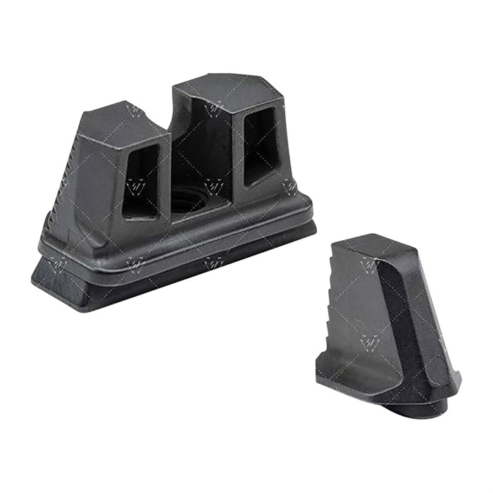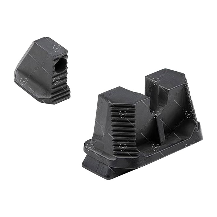 The Strike Iron Sights (Suppressor Height) give you an elevated sight picture for a red dot or suppressor pistol setup. The front and rear sights sit at an absolute co-witness position with a slide mounted red dot. Designed to help with proper sight alignment and keep the shooter's eyes focused, there is natural light that is seen on both sides of the front sight between the u-notch rear sight. Steps placed in the rear of both sights help angle and reduce unwanted glares or reflections out of your eyes. Lines and angles designed to use natural light reflections and shadow play to keep user's eye aligned and focused on the target. The rear sight is designed with a negative angle so that the shooter will see the back wall as dark as possible to give total focus on the sights. The line running down the middle of the rear sight is there to catch light from above and create a ""line"" illusion in which the shooter can use it to assist in aiming. The front sight can be painted to user’s color preference or use glow-in-the-dark pain to customize the look and use of the sights. Made from SUS630 hardened stainless steel, the Strike Iron Sights For (Suppressor Height) is engineered to be as robust as possible while giving you one of the most budget friendly options on the market. The Strike Iron Sights (Standard Height) give you the best affordable option so you can throw away those plastic or boring OEM steel sights. Designed to help with proper sight alignment and keep the shooter's eyes focused, there is natural light that is seen on both sides of the front sight between the u-notch rear sight. Steps placed in the rear of both sights help angle and reduce unwanted glares or reflections out of your eyes. Lines and angles designed to use natural light reflections and shadow play to keep user's eye aligned and focused on the target. The rear sight is designed with a negative angle so that the shooter will see the back wall as dark as possible to give total focus on the sights. The line running down the middle of the rear sight is there to catch light from above and create a ""line"" illusion in which the shooter can use it to assist in aiming. The front sight can be painted to user’s color preference or use glow-in-the-dark pain to customize the look and use of the sights. Made from SUS630 hardened stainless steel, the Strike Iron Sights (Standard Height) is engineered to be as robust as possible while giving you one of the most budget friendly options on the market.